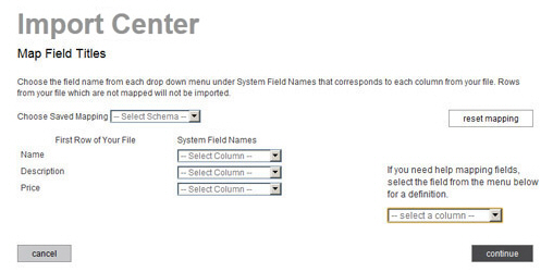 The “reset mapping” button will clear all values in the System Field Names drop-down boxes so that you can begin the mapping process again.