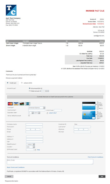 and will include a “PAY INVOICE NOW” button that will enable your customers