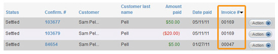 The invoice number for each payment is shown in the Invoice # column, as shown below: