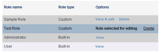 You will see the role you just created highlighted in the table, and it can now be assigned to users. (See Assign Roles above.)
