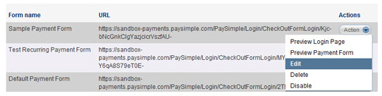 Locate the form you want to edit in the WEB PAYMENT PAGE TEMPLATES table on the Web Payment Pages dashboard.